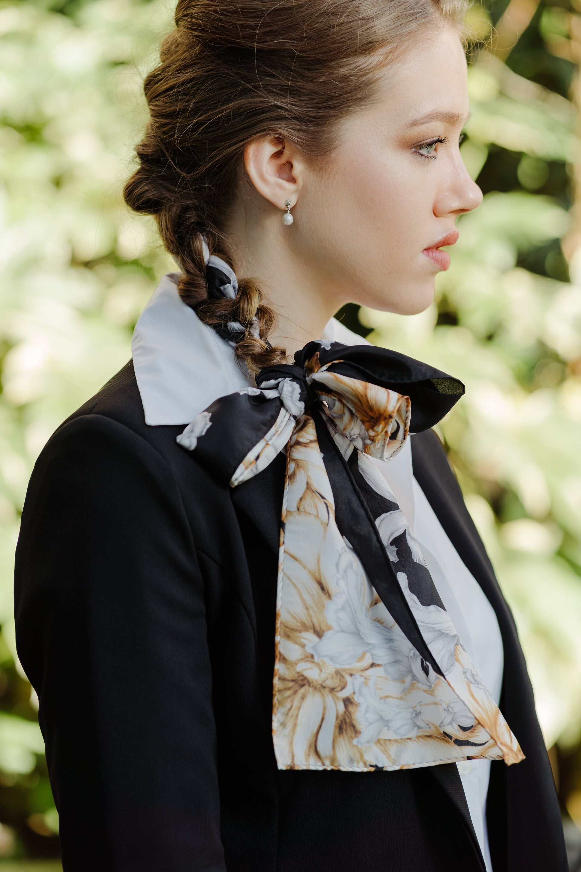 This Scarf is from the Eclectic Bloom collection. It features illustrations of wilted flowers, the design has been transferred onto an elegant silk habotai scarf. The illustration is inspired by the beauty of ageing. The designer recreates the beauty in a wilted and essentially “old” flower. Wear around your neck with your favourite dress, tie it in your hair or wrap it around your waist as a chic belt. The styling possibilities are endless with this elegant Black and yellow accessory!